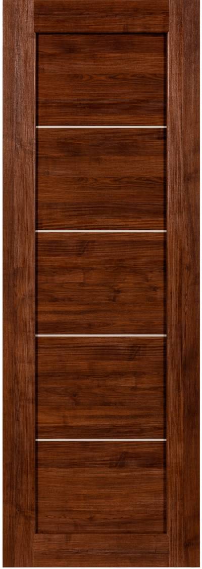 Горизонтальные вставки в филенке этой модели варьируют в зависимости от цвета: дуб беленый, дуб венге и орех карамельный - с алюминиевыми вставками, орех памплона, орех грецкий и лиственница беленая - со стеклянными вставками.