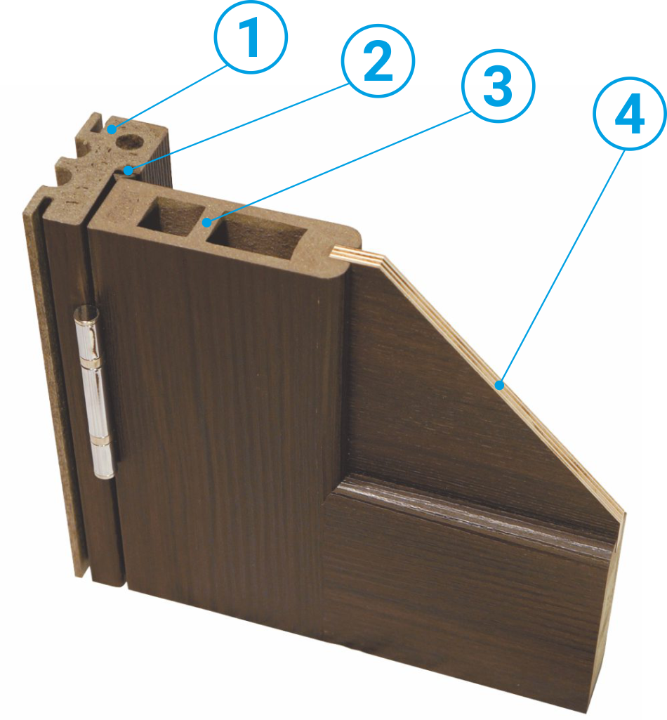 Царга двери KAPELLI-connect — это сотовый, толстостенный профиль, который изготавливается из древесно-полимерного композита (ДПК) и покрывается экошпоном.
