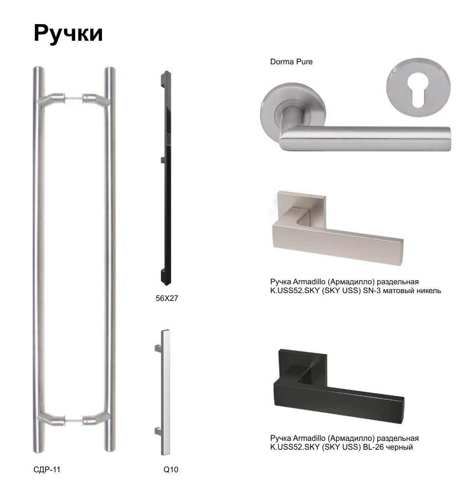 - Внутренняя ручка – нажимной гарнитур Dorma, нержавеющая сталь.